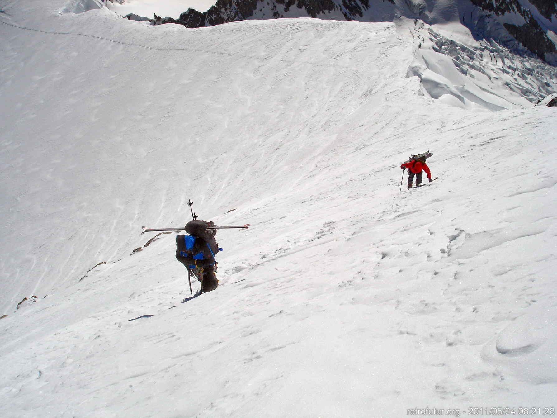 III.) 8:21 - In der Brenva Flanke. Derweil sah diese so flach und nett aus aus der Ferne des Maudit Grats