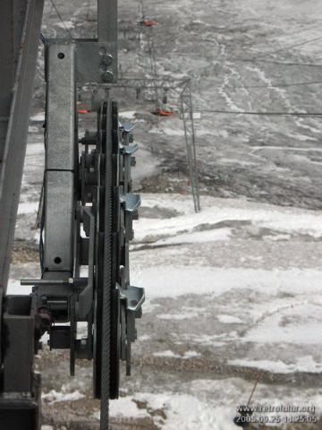 Lawinensprengseilbahn über der Umlenkscheibe des südlichen Plattskilifts