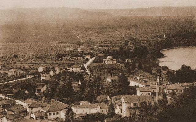 Stazione ferroviaria FS di Ispra, cappanoni delle officine meccaniche, la torre meteorologica, ante-Euratom fine anni 1950
